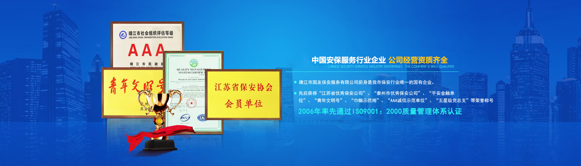 靖江市國友保安服務(wù)有限公司前身為靖江市保安服務(wù)總公司,成立于1988年12月,是我市保安行業(yè)唯一的國有企業(yè)。